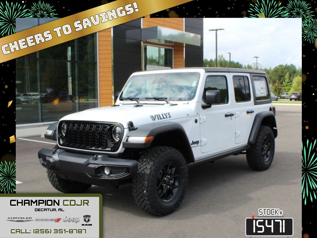 Discover rugged capability and modern comfort with this 2026 Jeep Wrangler Willys 4WD, now available in Decatur, AL. Powered by an efficient 4-cylinder, 2.0L gasoline engine, this Jeep Wrangler Willys pairs spirited performance with improved fuel economy and responsive turbocharged power. Built for adventure, the Off-Road Package adds enhanced suspension, skid plates, and heavy-duty tires so you can confidently tackle trails or weekend getaways. Inside, the Jeep Wrangler Willys blends utility with convenience. Hands Free Bluetooth keeps you connected and safe while driving, and Adaptive Cruise Control adds highway confidence for longer trips. The Back-Up Camera delivers clear rear visibility for parking and maneuvering, and Remote Start ensures a comfortable cabin before you step inside. This Jeep Wrangler Willys features a distinctive exterior and functional design elements that emphasize capability without sacrificing comfort. With 4WD traction and rugged Willys styling, it's ready for both urban streets and off-grid exploration. Located in Decatur, AL, this vehicle is competitively priced and advertised as the best price in the areaâ"an exceptional value for buyers seeking performance and features at a great deal. Schedule a test drive today to experience the 2026 Jeep Wrangler Willys in person. Ready for trail or town, this Jeep Wrangler Willys delivers practical tech, serious capability, and outstanding value.