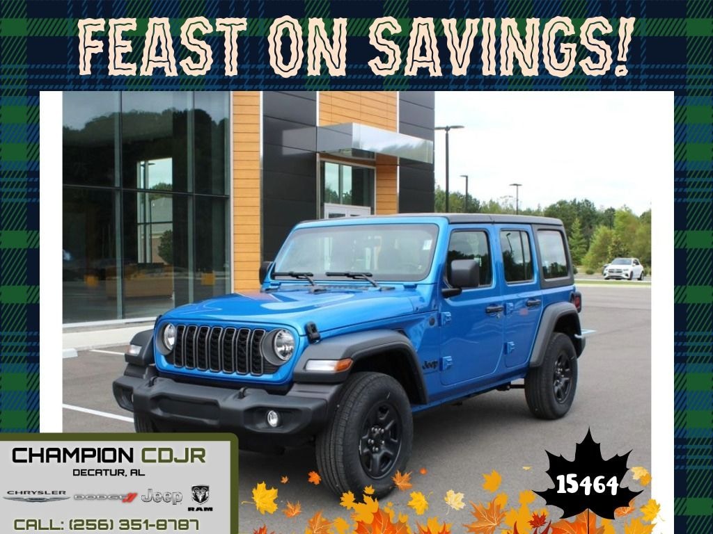Discover rugged capability and modern convenience with this 2026 Jeep Wrangler Sport 4WD, now available in Decatur, AL. Powered by a fuel-efficient 4-cylinder 2.0L gasoline engine, this Jeep Wrangler delivers confident on- and off-road performance while maintaining everyday drivability. Equipped with the Off-Road Package, it's ready for trails, featuring rugged suspension and enhanced traction systems that tackle rough terrain with ease. Safety and convenience come standard: Adaptive Cruise Control helps maintain safe distances on highways, while the Back-Up Camera simplifies parking and maneuvering. Stay connected hands-free with Bluetooth, and enjoy seamless smartphone integration via Android Auto for navigation, music, and messaging. The cabin balances durability with comfort, offering the practical features you need for daily driving and weekend adventures. Located in Decatur, AL, this Jeep Wrangler Sport is priced to move â" offering the best price in the area for buyers seeking capability without compromise. Whether you're commuting, towing light loads, or exploring off pavement, this Jeep Wrangler provides the versatility and tech you expect from a modern SUV. Don't miss your chance to own a 2026 Jeep Wrangler Sport 4WD equipped for adventure and value. Contact us today to schedule a test drive and confirm financing options.