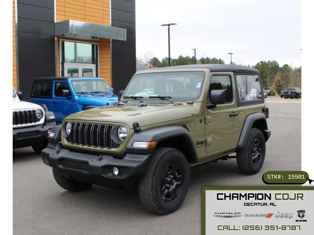 This Jeep Wrangler offers Apple CarPlay for seamless connectivity. Protect the vehicle from unwanted accidents with a cutting edge backup camera system. This mid-size suv comes equipped with Android Auto for seamless smartphone integration on the road. Bluetooth technology is built into this vehicle, keeping your hands on the steering wheel and your focus on the road. This 2026 Jeep Wrangler has automated speed control that adjusts to maintain a safe following distance, enhancing highway driving convenience. An off-road package is installed on this unit so you are ready for your four-wheeling best. This Jeep Wrangler has a 4 Cyl, 2.0L high output engine. This Jeep Wrangler has four wheel drive capabilities. This unit shines with a refined green finish. Set the temperature exactly where you are most comfortable in this mid-size suv. The fan speed and temperature will automatically adjust to maintain your preferred zone climate. The fog lights cut through the weather so you can see what's ahead.When you encounter slick or muddy roads, you can engage the four wheel drive on it and drive with confidence. The vehicle has auto-adjust speed for safe following. This model offers Android Auto for seamless smartphone integration. This Jeep Wrangler offers Apple CarPlay for seamless connectivity. It has an automatic transmission. See what's behind you with the back up camera on this unit. Set the temperature exactly where you are most comfortable in the Jeep Wrangler. The fan speed and temperature will automatically adjust to maintain your preferred zone climate. Easily set your speed in it with a state of the art cruise control system. Increase or decrease velocity with the touch of a button. The Electronic Stability Control will keep you on your intended path. The Jeep Wrangler has a 4 Cyl, 2.0L high output engine. The fog lights cut through the weather so you can see what's ahead. This 2026 Jeep Wrangler is equipped with a gasoline engine. The vehicle contains elegant lines finished with an exquisite green color. Bluetooth technology is built into this 2026 Jeep Wrangler , keeping your hands on the steering wheel and your focus on the road. This mid-sized SUV is perfect for your next adventure. An off-road package is installed on it so you are ready for your four-wheeling best.When you encounter slick or muddy roads, you can engage the four wheel drive on the Jeep Wrangler and drive with confidence. This mid-size suv has auto-adjust speed for safe following. The vehicle offers Android Auto for seamless smartphone integration. Apple CarPlay: Seamless smartphone integration for this unit - stay connected and entertained on the go! This unit has an automatic transmission. See what's behind you with the back up camera on this Jeep Wrangler. Set the temperature exactly where you are most comfortable in it. The fan speed and temperature will automatically adjust to maintain your preferred zone climate. Easily set your speed in the Jeep Wrangler with a state of the art cruise control system. Increase or decrease velocity with the touch of a button. The Electronic Stability Control will keep you on your intended path. This unit has a 4 Cyl, 2.0L high output engine. The fog lights cut through the weather so you can see what's ahead. Enjoy the tried and true gasoline engine in it. This unit shines with a refined green finish. This Jeep Wrangler features a hands-free Bluetooth phone system. The spacious cabin accommodates your family and friends in comfort. Take it to the mountains or the beach. it can handle it all. An off-road package is installed on the vehicle so you are ready for your four-wheeling best.It has four wheel drive capabilities. The Jeep Wrangler has auto-adjust speed for safe following. This unit comes equipped with Android Auto for seamless smartphone integration on the road. Apple CarPlay: Seamless smartphone integration for this Jeep Wrangler - stay connected and entertained on the go! This vehicle has an automatic transmission. Protect this model from unwanted accidents with a cutting edge backup camera system. Maintaining a stable interior temperature in this vehicle is easy with the climate control system. Easily set your speed in it with a state of the art cruise control system. Increase or decrease velocity with the touch of a button. Electronic Stability Control is one of many advanced safety features on this unit. This unit has a 4 Cyl, 2.0L high output engine. The vehicle has fog lights for all weather conditions. Enjoy the tried and true gasoline engine in this unit. This vehicle contains elegant lines finished with an exquisite green color. It features a hands-free Bluetooth phone system. This mid-sized SUV is perfect for your next adventure. An off-road package is equipped on this 2026 Jeep Wrangler .The vehicle has four wheel drive capabilities. This Jeep Wrangler has auto-adjust speed for safe following. This 2026 Jeep Wrangler offers Android Auto for seamless smartphone integration. Apple CarPlay: Seamless smartphone integration for this vehicle - stay connected and entertained on the go! This vehicle has an automatic transmission. See what's behind you with the back up camera on this Jeep Wrangler. Set the temperature exactly where you are most comfortable in it. The fan speed and temperature will automatically adjust to maintain your preferred zone climate. The vehicle features cruise control for long trips. Electronic Stability Control is one of many advanced safety features on this mid-size suv. This model has a 4 Cyl, 2.0L high output engine. The fog lights cut through the weather so you can see what's ahead. This model is equipped with a gasoline engine. This vehicle shines with a refined green finish. The Jeep Wrangler features a hands-free Bluetooth phone system. The spacious cabin accommodates your family and friends in comfort. Take it to the mountains or the beach. this Jeep Wrangler can handle it all. An off-road package is installed on this mid-size suv so yo