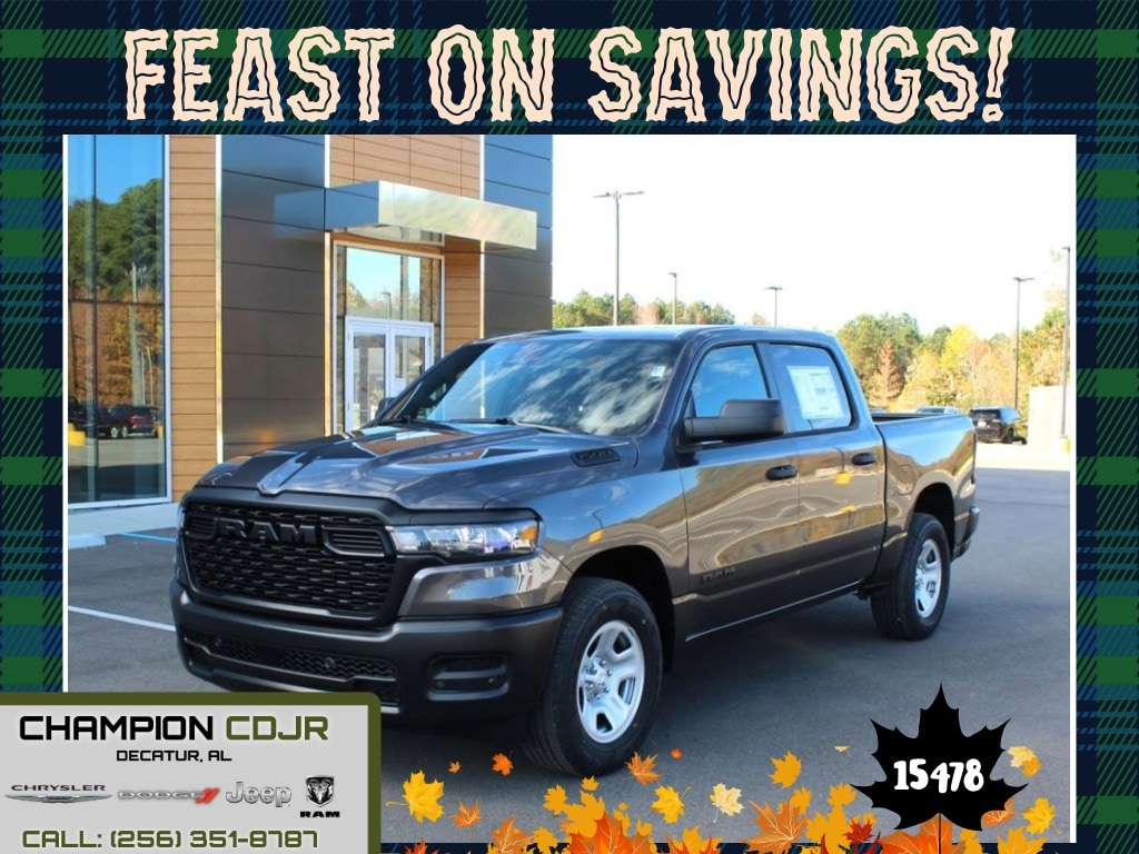 2026 Ram 1500 Tradesman 4WD â" unbeatable value in Decatur, AL! This rugged and capable pickup pairs a smooth 6-cylinder 3.0L gasoline engine with proven 4-wheel drive traction, giving you confident performance on-road and off. Built for work and weekend adventures, the Tradesman offers practical durability plus modern tech features you want: Satellite Radio for long drives, a Back-Up Camera for safer maneuvering, Apple CarPlay and Android Auto for seamless smartphone integration, and Remote Start for comfort in any weather. You'll appreciate the Tradesman's functional interior layout and durable materials that stand up to daily use while providing the convenience and connectivity expected from a modern truck. The 3.0L 6-cylinder delivers balanced power and efficiency for towing, hauling, and highway cruising, and the 4WD system enhances control on wet or uneven surfaces. Safety-minded features like the Back-Up Camera enhance visibility during tight maneuvers, and the infotainment suite keeps navigation and entertainment at your fingertips. Located in Decatur, AL, this Ram 1500 Tradesman is offered at the best price in the area â" priced to move for buyers seeking maximum value without sacrificing capability. If you need a dependable, tech-equipped 4WD pickup with an efficient 6-cylinder engine and a roster of modern conveniences, this 2026 Ram 1500 Tradesman is ready to work. Contact us to schedule a test drive today.